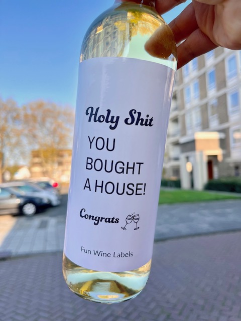 Wijnetiket ‘Bought House’ maakt van elke fles wijn een origineel cadeau en je plakt het gemakkelijk over een bestaand wijnetiket heen. Leuk cadeau om te geven wanneer iemand net een huis gekocht heeft of verhuisd is.