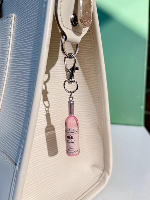 Voor liefhebbers van rosé wijn is deze tas / sleutelhanger natuurlijk een schot in de roos! Met handige draaiknip om makkelijk en stevig te bevestigen aan bijvoorbeeld een tas.